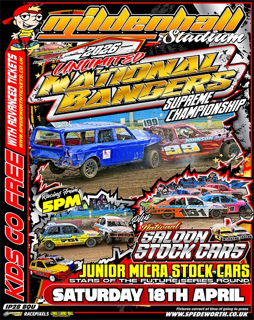 Formula: 1400cc Stock Cars | 1ltr Hot Rods | 2.0 Hot Rods | Bangers | BriSCA F1 Stock Cars | BriSCA F2 Stock Cars | Classic Hot Rods | Front-Wheel Drive Hot Rods | Heritage F2 Stock Cars | Junior Bangers | Junior Micra Stock Cars | Junior Super Twos | National Bangers | National Hot Rods | National Saloon Stock Cars | Oval Track Legends | Reliant Robins | Rookie Rods | Scrapco Ninja Karts | Stock Rods | Super Twos | Superstox | UK Barn Finds Historic Stock Cars | V8 Hotstox |