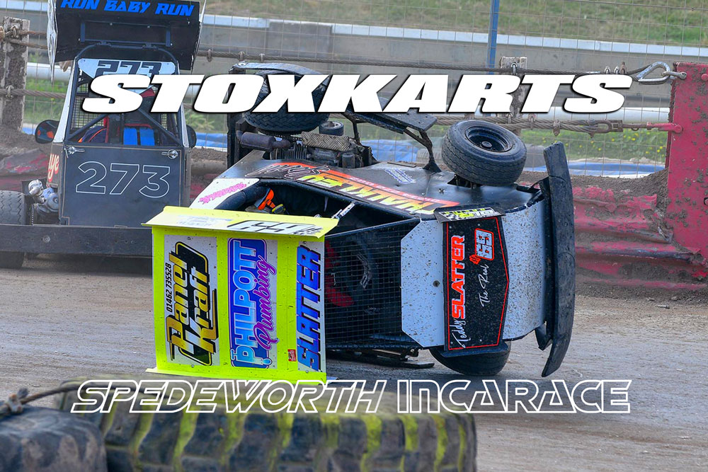 The smallest machines running on the UK ovals in the 21st century but by no means the least spectacular, Stoxkarts are just as they sound - karts with stock car bodyshells and bumpers.