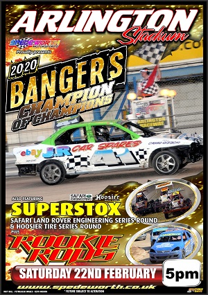 Spedeworth / Incarace would like to make all drivers, staff and race fans aware that the start time for the next event at Arlington Stadium, Eastbourne (Saturday 22nd February 2020) has been brought forward to 5pm following the positive number of bookings coming through especially for the Rookie Rods.