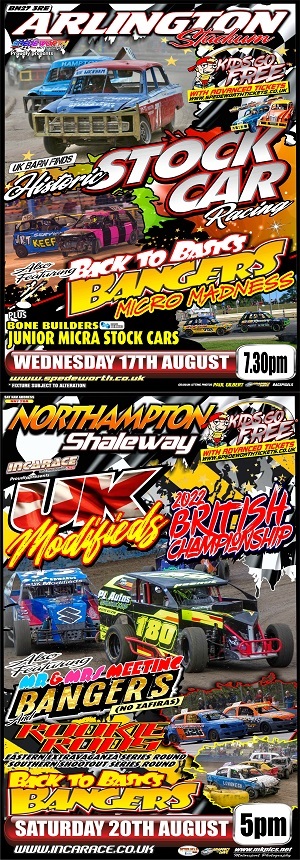 • The “Run What Ya Brung” event at Arlington Stadium, Eastbourne on Wednesday 17th August has been removed. This may be rescheduled for Wednesday 24th August and a further announcement will be made in due course.