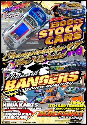 The 2022 1300cc Stock Car World Championship takes place at the Aldershot Raceway on Sunday 11th September!