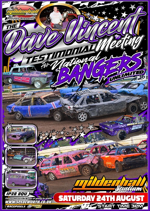 The 2024 Dave Vincent Testimonial Meeting takes place on Saturday 24th August at Mildenhall Stadium and advanced tickets are on sale NOW!