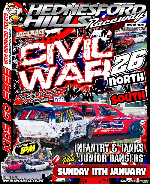 Civil War roars into Hednesford Hills Raceway on Sunday 11th January at 1pm and over the Christmas period some updates have come to light as follows:-