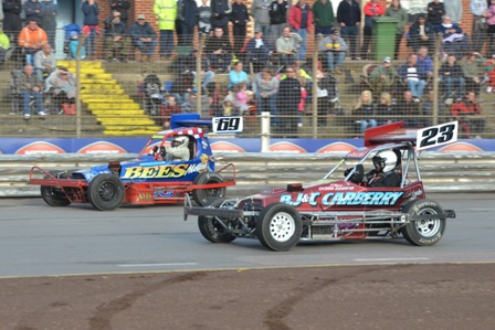 It wasn't a walk in the park for him though, as he fought off a prolonged challenge from 67 Chris Roots for the lead, Roots eventually spinning and rejoining for 3rd, and 376 Steven Jackson also had a late charge at Carberry but had to settle for 2nd place. Two former World Champions Steven Jackson and Glenn Salmon won the other two heats on a night