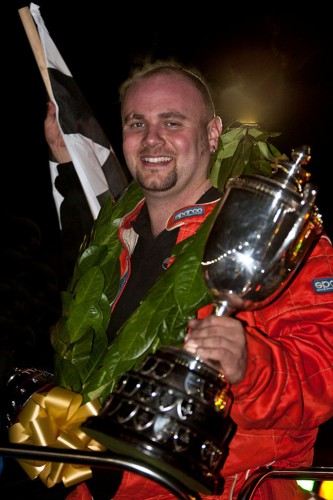 This was always going to be a nail-biting thriller with the first turn likely to be crucial and for defending champion Ben Marjoram it certainly was as he was dramatically spun out by the fast-charging Steven Jackson. It could have been so different though for at the first time of asking both he and race leader Jason Cooper had escaped the predicted chaos only for a multi-car smash on the back straight to bring things to a complete halt. After a ten minute recess for repairs and Marjoram’s early taste of cold steel in the restart he was by no means the last as the front bumper was being used like it was going out of fashion such was the desire amongst the entire field to have their name engraved beside win number fifty. It was a majestic display of bumperwork with some truly absorbing scraps at the sharp end. Disaster soon befell former champions Cooper and Shaun Brooker though who got all tangled up at high-speed down the home straight with Dave Miles Junior flying across the pair of them as they all crashed out. Woodbridge-based youngster Alex Meadows saw his chances evaporate with a big engine blow-out which also caused a few to spin on the spilled oil. After his sensational bumperwork early on Jackson was now out front and looking like a man on a real mission, however Colin Aylward managed to get up the inside only to be held up, thus allowing Mark Smith through. A classic duel between Jackson and Smith then ensued as the lead changed hands twice on the same lap before the caution flag was out for the stranded Ben Munford. On the restart Jackson gave Smith such a hard hit when the flag dropped that he dropped down to fourth only for the Yarmouth night club owner to bounce back and dislodge third-place Billy Smith with such force that he in turn hit Nick Smith who rolled on to his side. Yet another race stoppage saw the cars reassembled in the order they were before the previous restart giving Smith another chance to get away and this time he did so with Aylward dislodging Jackson at the second attempt. With what turned out to be the championship-winning blow Aylward then dislodged Smith who promptly went on to have yet another titanic battle for second with Jackson which the latter won. That skirmish also allowed founding promoter Les Eaton’s grandson Ryan to take up what turned out to be a fitting third place finish as a desperately unlucky Smith blew up before he could fight back when a rostrum place was no more than his courageous efforts deserved. There was still time for one last twist in the tale as the rapid Daz Kitson - from almost the rear of the thirty-six car field – looked all set to complete the seemingly impossible and grab a top three spot only to mis-time a huge lunge at Eaton and thus had to be content with a still impressive fourth place finish.