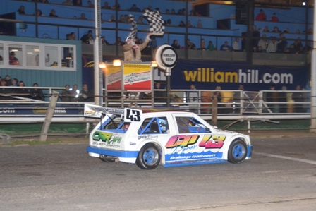 The Grand Final race was the first race of the night and it was a big well done as well to 43 Paul Wright who took the win and the prize of 3 Hoosier tyres ahead of Paffey (2 tyres) and 88 Dale Atkins (1 tyre). Other heat wins on the night went to 30 Martin Codling and 7 Collin Moss.