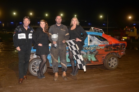 The Ipswich Banger Championship Grand Final was first up, the drivers starting on the grid in points order as accumulated through the season, with 558 Rob Haines on pole alongside World Champion 309 Michael Lane, and he took advantage of the place by taking the win and cementing his position at the top of the tree! 426 Mark Pope passed 309 for 2nd with Laney having to settle for 3rd in the race, another local boy in 151 Jamie Hadley in 4th. Haines won the series overall ahead of Laney and 282 Steen Rozier.
