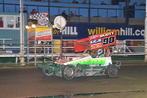 Peter drove superbly finishing ahead of #71 Lee Barnard (2nd) and #29 Mark Williams (3rd) who battled to the end but couldn’t keep up the Peter’s high speed performance around the Plough Lane Arena.