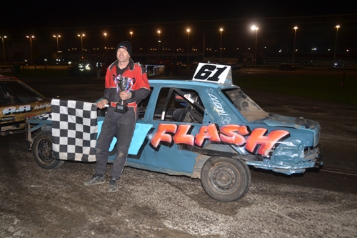 Karl used to race National Bangers in the 3litre team crashing and smashing his way around Wimbledon but Sunday night Karl’s pure skill and confidence took him on the outside line, avoiding the posts and wires to be the first to Mr Starter Alex Dunmore’s rostrum and the double chequered flags.