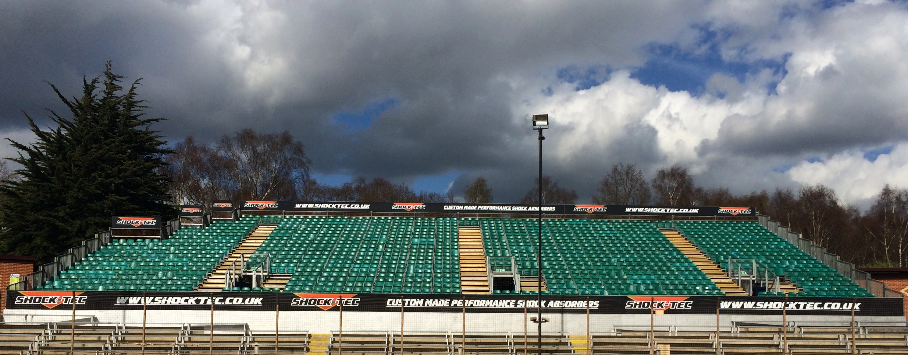 One of our grandstands on the back straight at Foxhall Stadium is now the Shocktec Grandstand!