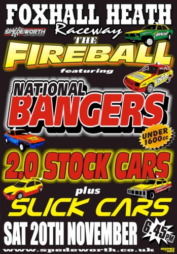 It’s the National Banger Fireball as the drivers return to the scene of the World Final earlier in the month, that meeting was for the unlimited cc cars but this time sees the cc limit capped at 1600cc which should see a good mix of cars in the pits. Michael Allard raced a Jaguar in that big race which did not actually last him very well, it will probably be something Japanese and front wheel drive this week with Hondas and Rovers very much the preferred machinery. The ever present Ipswich based Team Simple are booked in so local hopes will be pinned on Gavin Ward, Jason Thurlow and the ever smiling Sean Parratt as they look to crash their way through the field to the front in just 16 laps. Joe Palmer had a quiet meeting here last time by his standards, Palmer has made the papers twice in 2010 with his crashing exploits, maybe he has decided it’s time to win a few races instead of ending them upside down or as he did in June, sanding the car on its nose. Traditionally the Fireball meeting helps to raise funds for Darren Jones a likeable and local Banger driver who was injured in an accident a few years back, Darren will be at Foxhall as he is for a lot of Banger meetings and a few of the drivers who raced with him will paint their cars in the colours of Darren’s HMS Wreckers team.