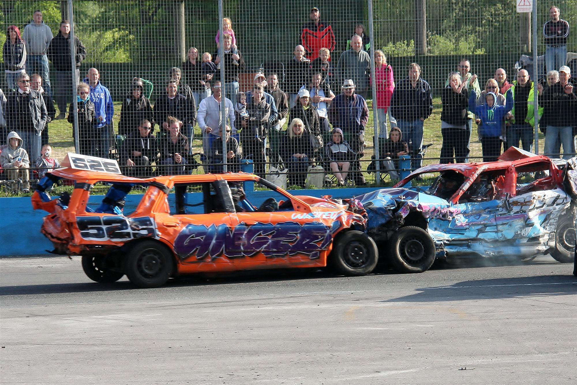 New for the 2014 Championship of the World at Foxhall Stadium on 11th October, we will be allowing drivers to turn round. There will be 2 markings on the fence to indicate drivers can turn around inbetween these areas. Turning round has to be from outside in, you must not attack the drivers side of the car. The fence will be clearly marked from where you can turn round. If you turn around out of this area and someone gives you a head on, you will be the one who is banned. This will be from half way round the bend to the exit of the bend, which we class as the safest and slowest part of the track. This is not the same rule as before where drivers had to make contact with the passenger side of the car, and head ons are allowed. The marked areas will be marked on the armco in the coming weeks so visitors can see this marking beforehand.