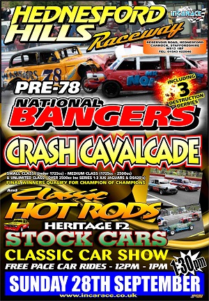 On Monday evening (8th September 2014) a conference call was held to discuss the Pre `78 Crash Cavalcade which is to take place at Hednesford Hills Raceway on Sunday 28th September 2014 at 1.30pm and confirm a few questions drivers have asked.