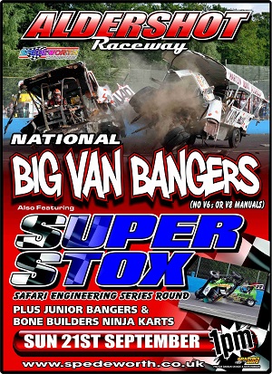We look forward to seeing everyone at Aldershot Raceway on Sunday when the Big Van National Bangers, Superstox, Junior Bangers & Bone Builders Ninja Karts take to the track with the first race at 1pm!
