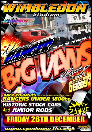 Spedeworth / Incarace would are pleased to announce that the Bangers have been added to the Boxing Day meeting at Wimbledon Stadium – 2pm start time.