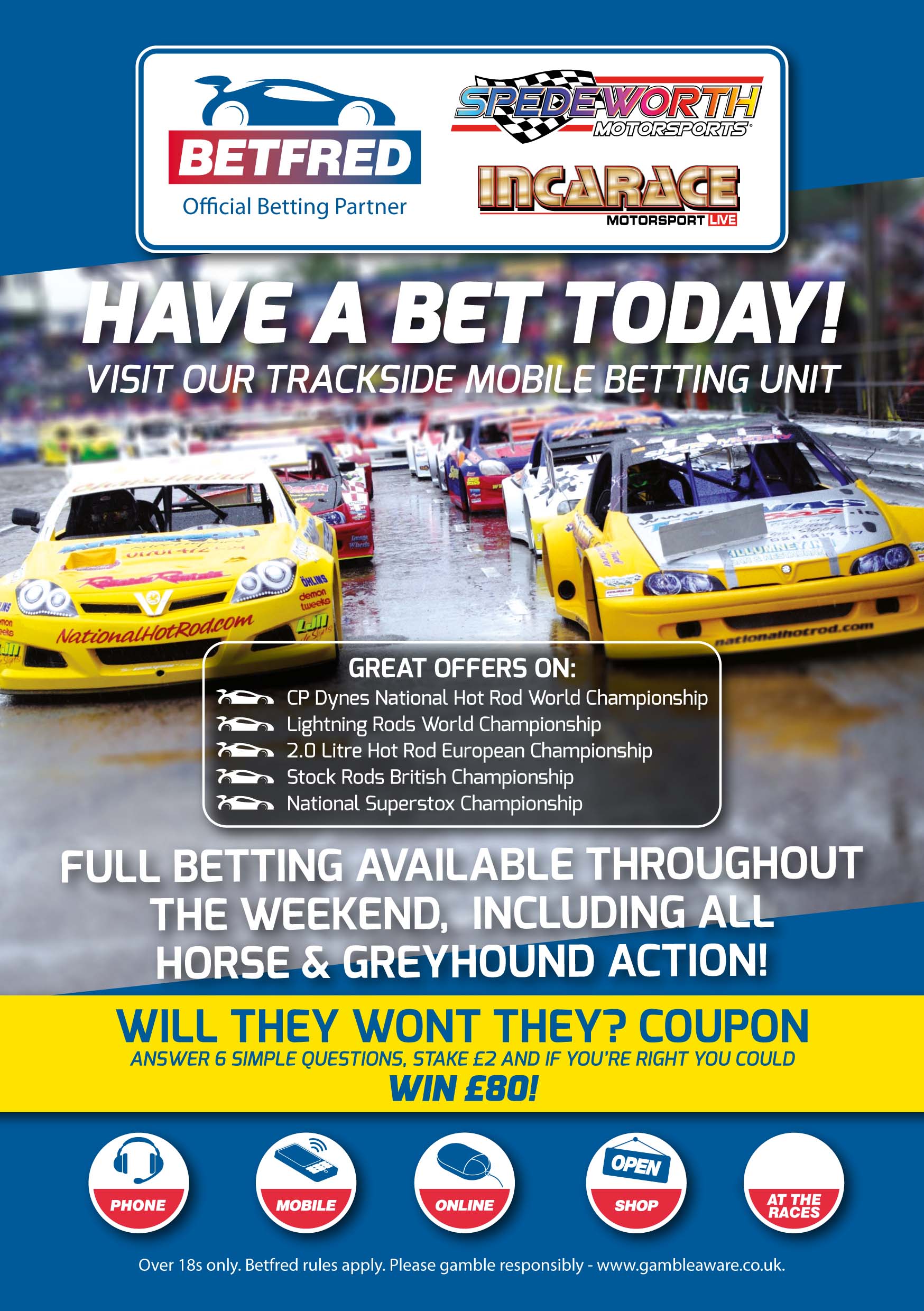 We acknowledge our great Friends at Betfred for their generous support of the National Hot Rods World Final Revenge on Day two of Spedeweekend.
