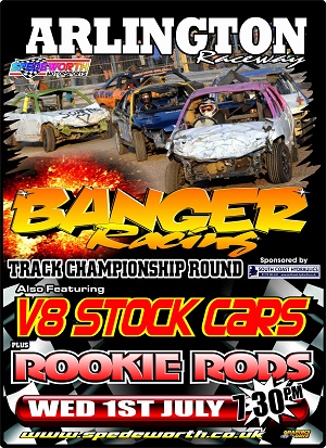Alongside the V8 Stock Cars the Bangers return to Arlington Stadium, Eastbourne on Wednesday night for round 6 of the South Coast Hydraulics Track Championship and a full grid of Rookie Rods complete the three formula frenzy to kick off the month of July!