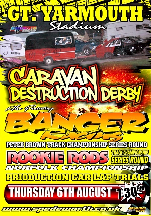 On Thursday 6th August 2015 the Caravan Destruction Derby takes place at Great Yarmouth Stadium (7.30pm start time) and we are still looking 3-4 drivers who have cars with tow bars to take to the track with the caravans provided at the stadium.