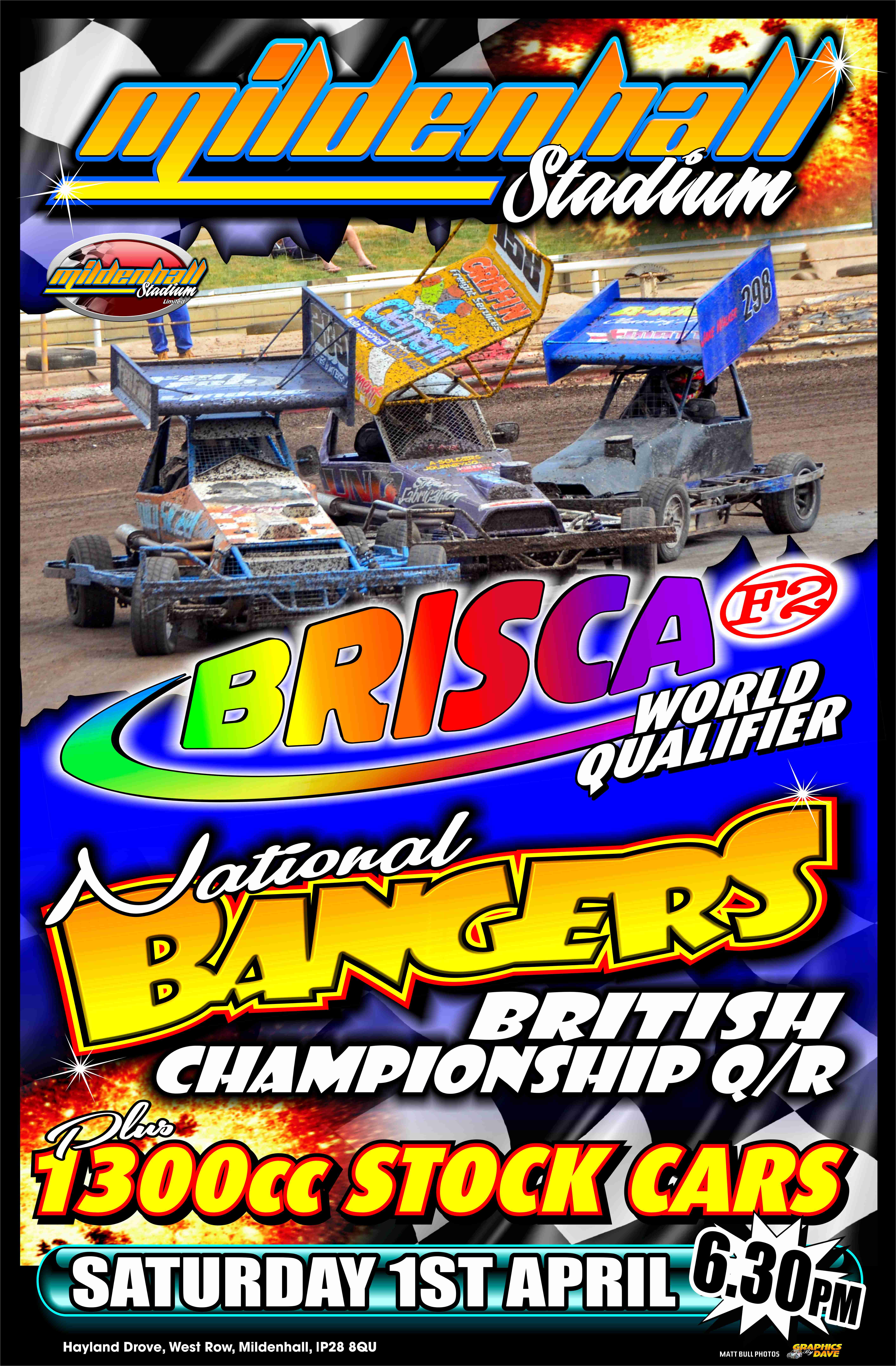 At Mildenhall we have a terrific meeting in store with a Brisca F2 Stock Car World Qualifying Round, 1300Stock Cars and National Bangers in Round 2 of British Championship Qualifying, it’s a traditional Stock Car night on the shale at West Row with the action underway at 6:30PM.