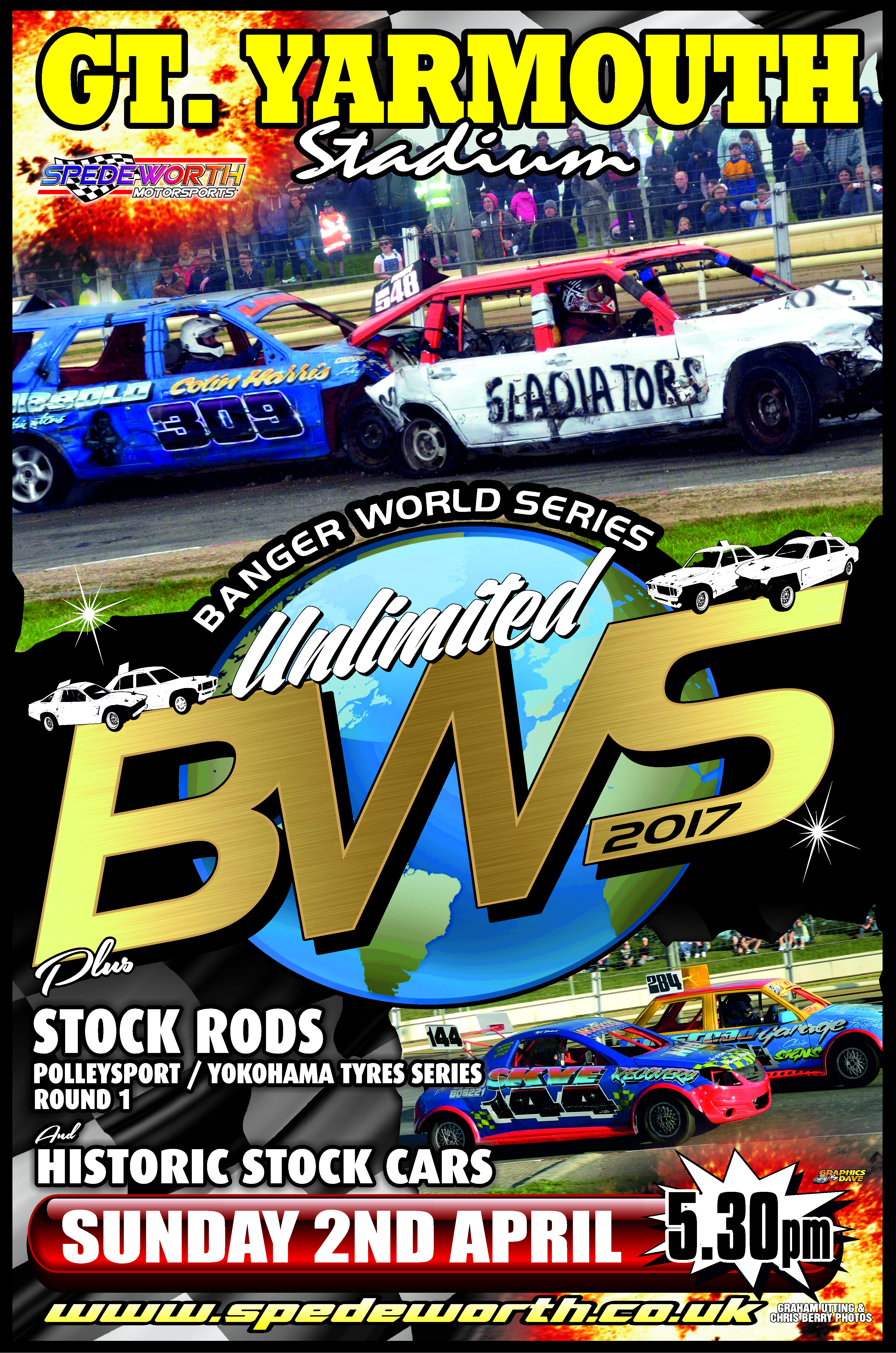 Finishing a busy weekend off we have another anticipated meeting as we open the doors at Gt Yarmouth Raceway for Season 2017 as we present BWS Round 3 with Historic Stock Cars and Stock Rods competing for their 2017 Polleysport / Yokohama Tyres Series Round 1. The action gets underway at 5:30PM.