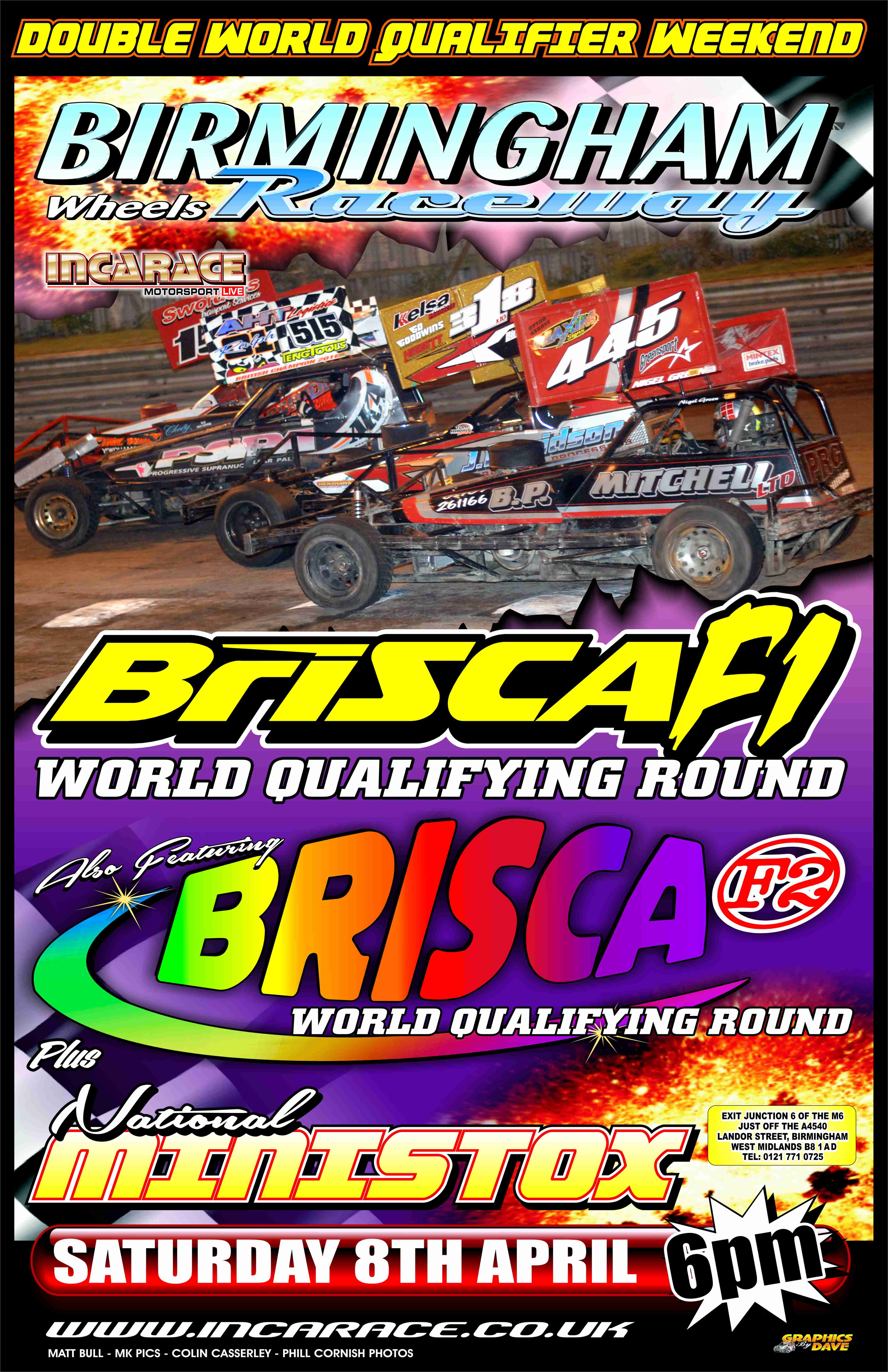 Don’t forget this weekend’s Race Action kicks off on Saturday 8th April at Birmingham Wheels Raceway with a fantastic Brisca F1 and F2 World Qualifier Double – Header with the superb National Ministox in support making it a full – contact night of racing in the City, starting at 6:00PM.