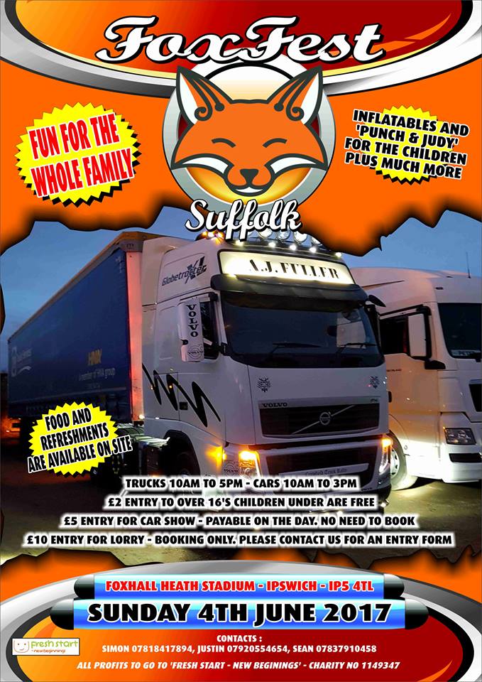 Race Drivers and Fans, don’t forget at Foxhall Stadium this coming Sunday 4th June, it’s the inaugural ‘Foxfest’ Truck Festival during the day from 10:00am to 16:00pm.