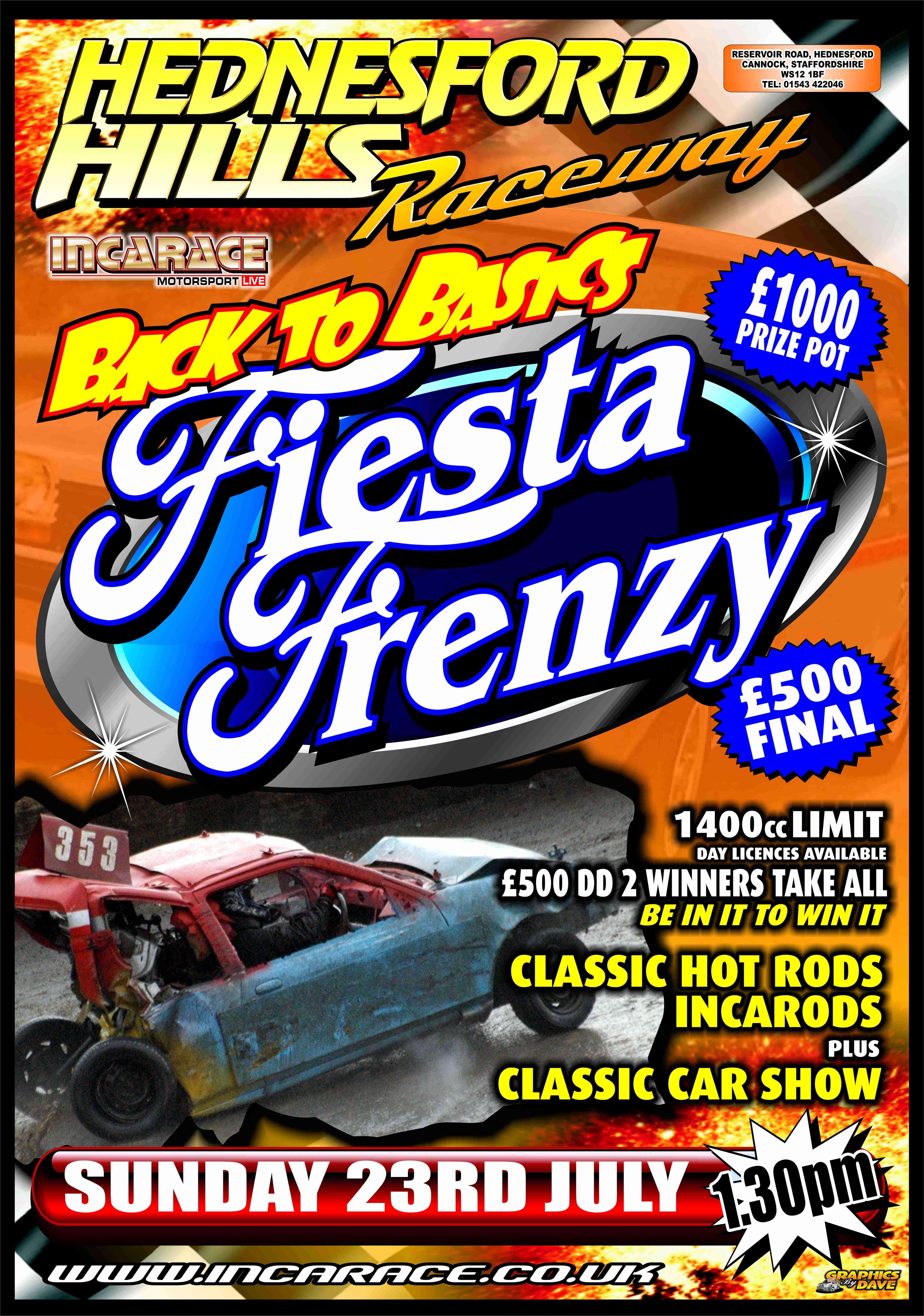 In addition to the Fiesta Bangers, there is Classic Hot Rods and Incarods with a ‘Show and Shine’ Classic Car Show as well so there will be plenty for Race Fans to see and enjoy on the day in addition to the fantastic Fiesta Banger action!