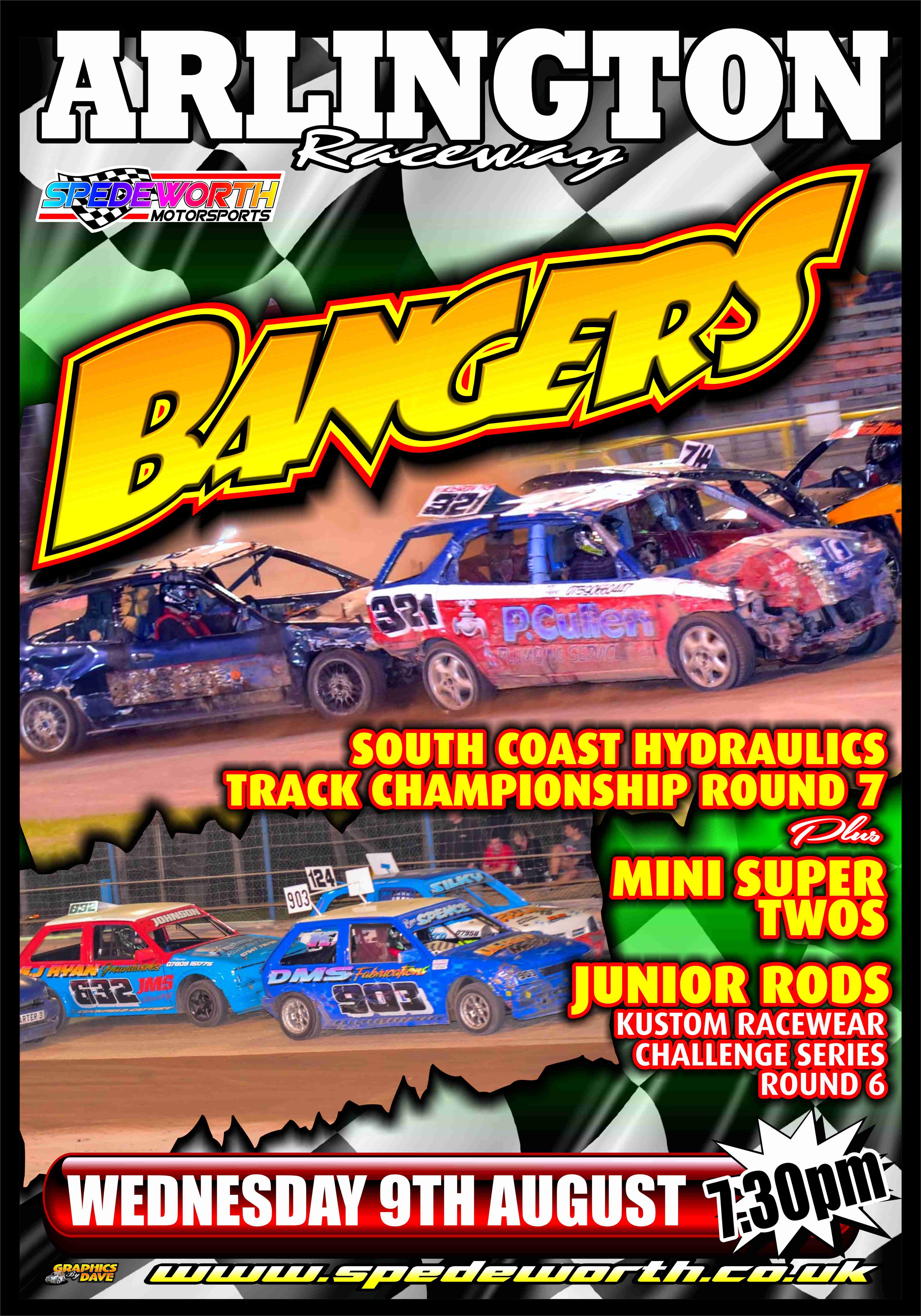 Then on Wednesday 9th August at Arlington Raceway, Eastbourne we feature Bangers in their 2017 South Coast Hydraulics Track Championship Round 7, Junior Rods in their 2017 Kustom Racewear Series Round 6 and the superb Mini Super Twos with a start time of 7:30pm.