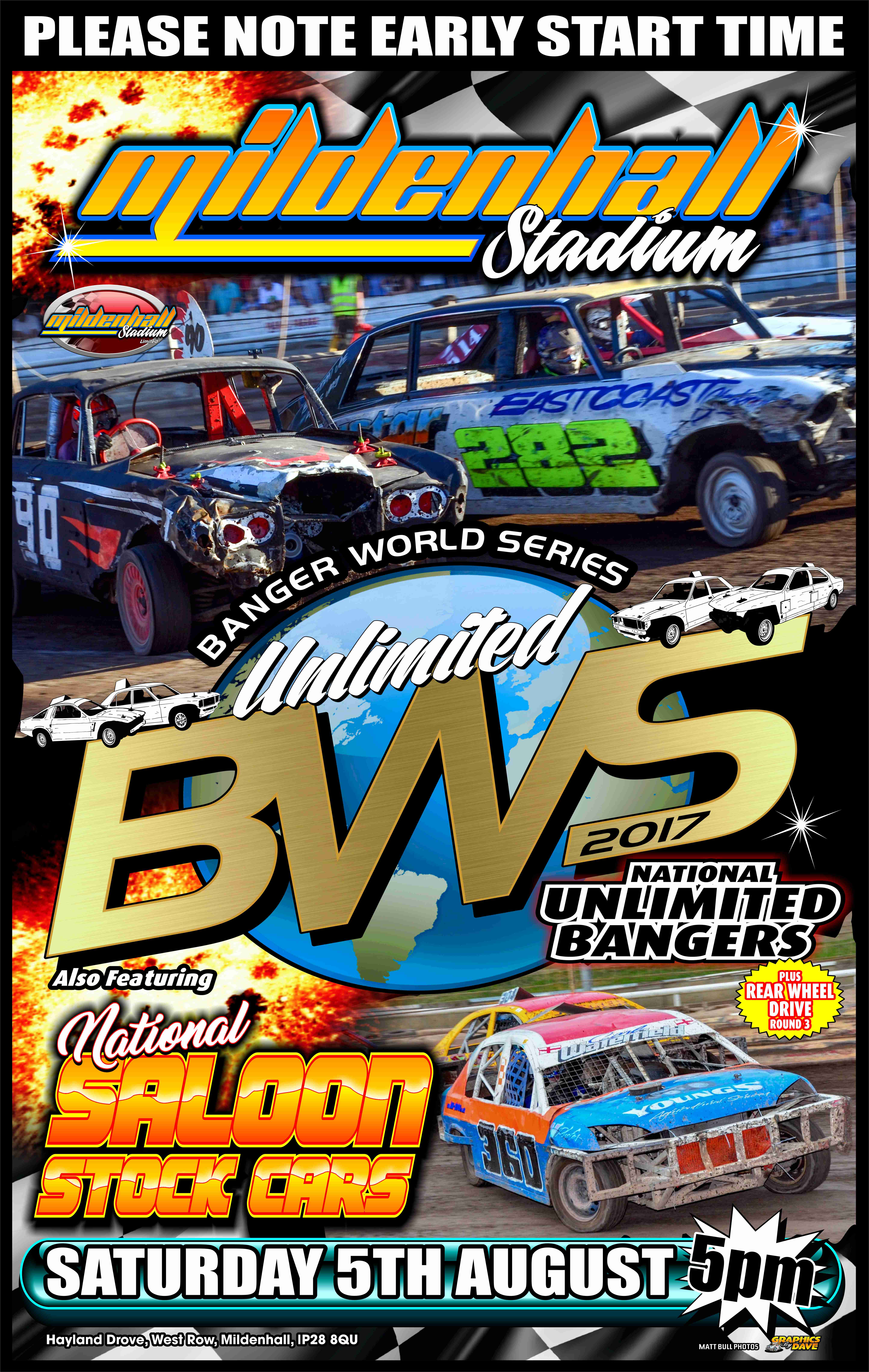 Race Fans really are stuck for choice this weekend also for at Mildenhall, we present the Unlimited National Banger World Series Round 7 with an incredible 134 National Unlimited Bangers booked in, it really is a ‘who’s who’ of the National Banger scene competing on the shale and there’s National Stock Saloons in support with them also to make for an incredible night of action at the West Row Raceway! Don’t forget Race Fans the action gets underway at an earlier start time of 5:00PM.
