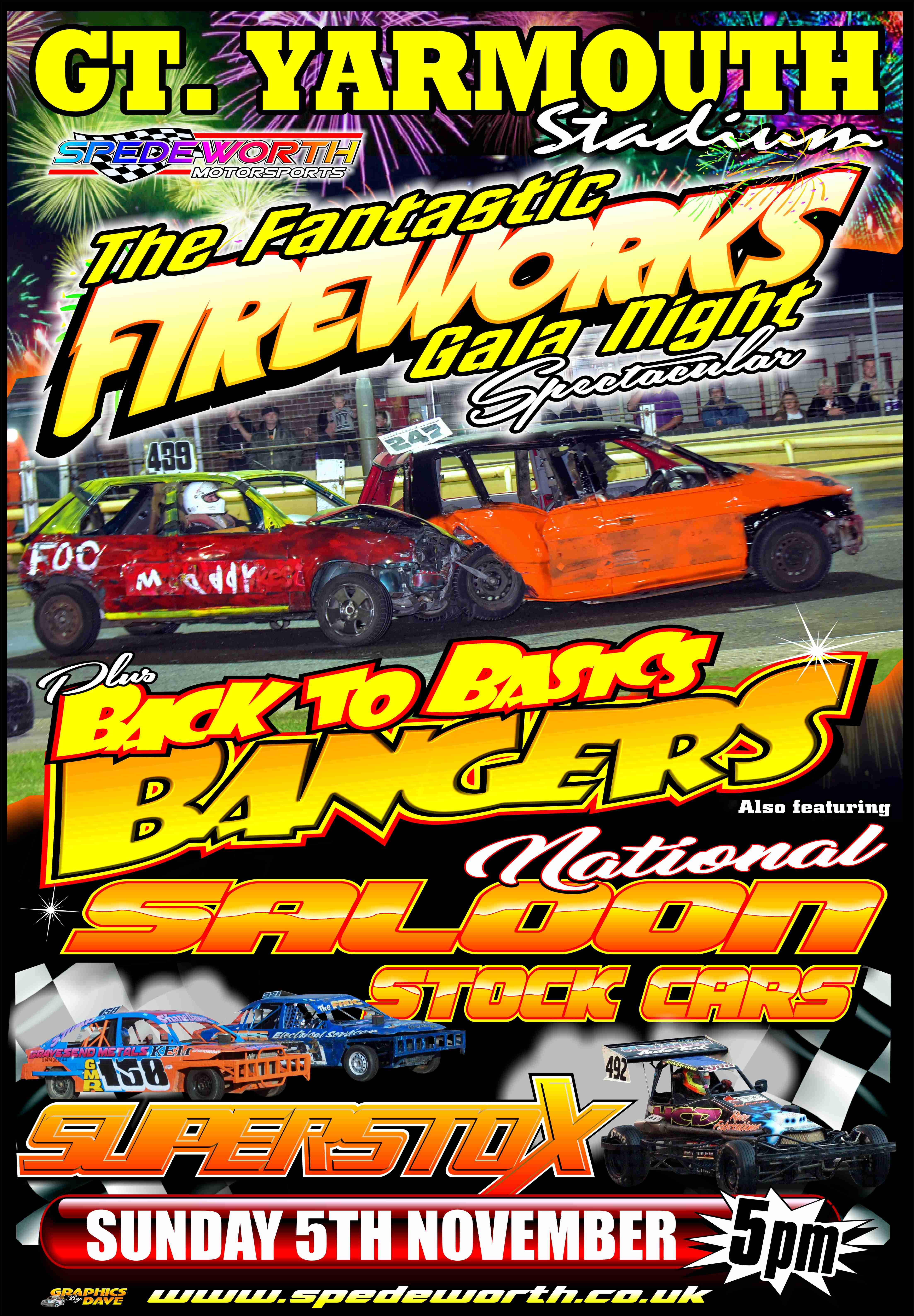 At Foxhall Stadium, Ipswich it’s the annual Gala Night meeting with a superb entry of 104 Bangers and 32 National Saloon Stock Cars, plus of course one of our famous Firework Displays. Race Fans please note, Advance Ticket Turnstiles will open at 4:00PM with Regular Turnstiles opening at 4:30PM.