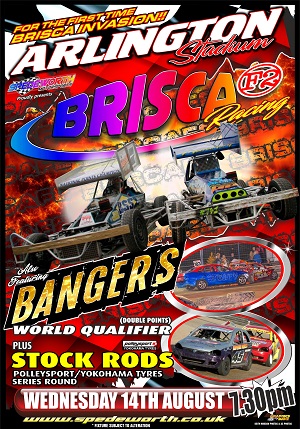 CALLING ALL BriSCA F2 DRIVERS! Here comes a new track to try and tame. On Wednesday 14th August we have scheduled a meeting for the BriSCA F2’s at Arlington Stadium, Eastbourne! Better known by the locals as the paperclip oval, Arlington Stadium is a concrete surface with long straights and tight bends and is usually home to the Spedeworth Superstox who always put on a good show and remind people what stock car racing is all about. We invite the BriSCA F2’s to the southern venue to take centre stage and see which drivers are able to tame the paperclip and lift the trophies throughout the night. The facilities at the circuit are excellent. The covered grandstand is centrally heated and there is a licensed club house. Other facilities include hot dog/hamburger stalls, toilets (including disabled access) and a sponsors lounge. There is also grass banking /terracing around the bends. There is ample car parking available. The pits are situated within the trees along one side of the main stadium. The first race at Arlington Stadium is at 7.30pm with practice at 6.30pm. Pits open at 4pm. To book-in for this meeting please use the usual methods or by calling 01252 322920.