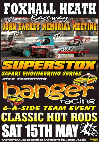 Another three formula line up this Saturday (6.45 start time) sees the annual John Earrey Memorial meeting as Foxhall remembers one of its greatest characters. Johns career as Commentator and Stadium Manager spanned four decades, and he is still fondly remembered for his contributions to both Stock Car racing and Speedway.